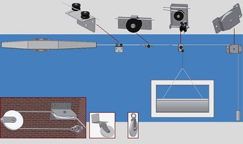 Weiterhin bieten wir verschiedene Umlenkrollen an, die Nylonseile bzw. Drahtseile bis zu einem Durchmesser von 5mm führen. Die Rollen selbst sind aus Kunststoff hergestellt, sämtliche Metallteile aus rostfreiem Edelstahl.